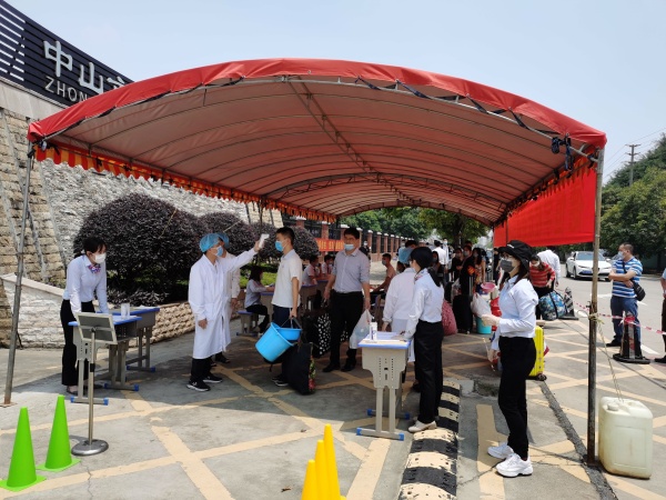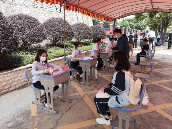 為了使初三和高三學(xué)生錯峰返校,學(xué)校將初三學(xué)生的返校報到時間定為下午13時到15時,但中午12時30分左右,已經(jīng)可以看到有零星的返校心情較為急切的學(xué)生和家長拖著行李在校門口周邊立等,而此時,負(fù)責(zé)相關(guān)工作的老師尤其是班主任們也已經(jīng)開始緊鑼密鼓的準(zhǔn)備。