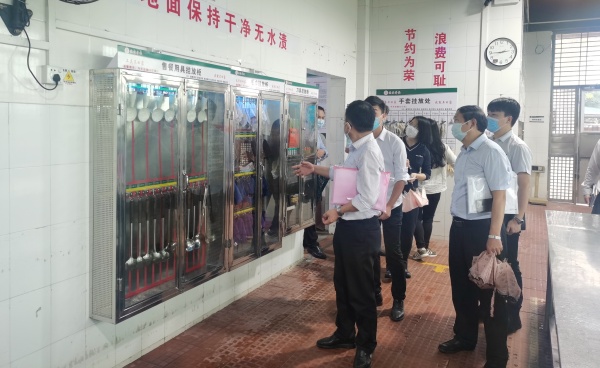 當天,德恒校園里流連春光,舍不得凋零的幾支紫荊花被南國的驟雨擊落一地,落英繽紛,美麗極了。下午2:00,德恒學校全體行政滿懷信心在校門口列隊迎接市高三、初三復學防控工作專班的到來。2:30左右,市教育工委廖誠副書記帶領的驗收專班,在民眾鎮黨委劉釗妍委員和民眾鎮教指中心黃海文主任的引領下,來到德恒學校。一行人在學校門口測完體溫和進行必要消毒后,隨即開始了對德恒學校高三、初三復學防控準備工作的實地查驗。驗收專班一行人首先來到學校健康觀察室,查看了觀察室的防疫物資配備,檢查了消毒通風情況。接著來到學生宿舍,看到德恒學校學生宿舍干凈整潔,通風良好,了解了學校初三、高三學生全部寄宿,每間宿舍只安排三名學生等情況。隨后查看了食堂操作間和學生餐廳,他們不僅對食堂的整潔規范給予了高度評價,還特別對學校安排班主任和行政陪同就餐管理學生的這個細節提出了贊賞。再接著一行人查看了學校保健室、防疫物資儲備室、教室。最后,就地在備用教室召開了反饋會。在會議中,廖書記說,他幾年前來過此地,但當時還不叫德恒學校,今天再到這里,他對德恒兆業教育集團接收這所學校后帶來的巨大變化感到驚喜和意外。他同時強調,德恒學校這次高三、初三復學防控準備工作完成得非常好,要學校及時總結做法和經驗,并將其推廣到后續其他年級的復學防控準備工作中,甚至要在民眾鎮乃至中山市加以推廣,并最后激勵德恒全體行政要再接再厲。