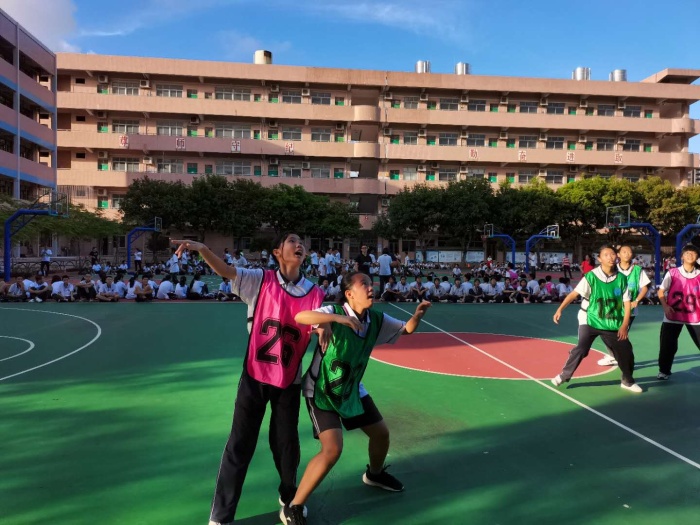 9月21日下午,夕柔風輕,風煙裊裊。而民眾中學籃球場上確是人聲鼎沸,加油聲、吶喊聲不絕于耳。民眾中學初二年級籃球淘汰賽正激烈進行著。此次比賽采取上、下半場15分鐘包干制,上半場進行女子籃球比賽,下半場進行男子籃球比賽,采用比分淘汰制的形式進行比賽,一共進行四輪!各個班級身著紅藍綠黃等各色隊服在彼此的賽場上團結互助,掩護與擋拆,奔跑回轉,突入內線,精準投射,精彩紛呈,簡直就是一場場視覺盛宴。場上一溜溜嚴整的啦啦隊員更是鼓勁聲,歡呼聲不絕。在比賽中巾幗不讓須眉,女子隊員握球,控球投籃風姿瀟灑,英氣逼人!此次比賽各個球隊都認真對待,面對問題,球隊也積極應變,迅速調整,各班比分交替上升。但強中自有強中手,有比賽就有勝負,最終7、2、3、8、11等6支球隊成功晉級半決賽。