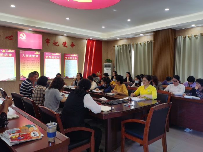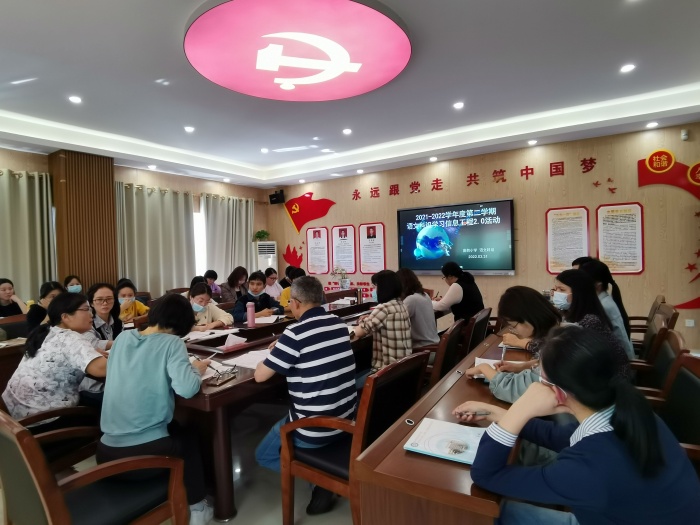 第六節課,全體科組集中黨員活動室,由科組長郭少麗老師組織開會。先由聽課的老師組織評課,老師們在教學目的、教學手段、教學課時以及隨文識字等方面發表了自己的意見。接著,郭少麗老師組織大家學習信息工程2.0的相關文件精神,包括研究的規劃,考核的方案,以及科組及個人要完成的內容等,讓大家對陌生的2.0有個清晰的認識。