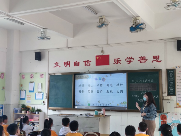 3月31日下午,春意濃濃,我校語文科組開展了結合信息工程2.0識字教學研討活動,譚曉彤老師在二(2)班用“隨文識字”的形式呈現了一堂精彩紛呈的識字寫字公開課。南朗小學語文組教師參與聽課,共同學習。