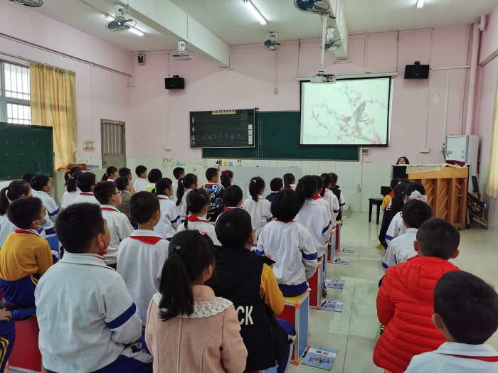 南朗小學開展音樂、美術、語文家常課,推進信息技術融合的課例研討。段靜老師結合信息技術中的PPT課件,給學生出示了各種各樣的形形色色的書包,整節課圍繞“書包”欣賞、繪畫、點評,再用實物投影,講評學生的繪畫作品。吳瑩老師則利用多媒體技術,出示各種動物聲音,引入《頑皮的杜鵑》一課,再用音頻、視頻等,引導學生學習唱譜、唱詞,感受杜鵑的頑皮。語文科組長郭少麗老師親自示范,給一二年級上課,給新教師示范如何結合多媒體和課本,提高識字教學的效率。