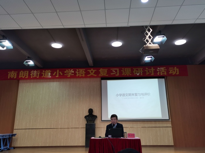 為有效開展語文復習工作,提高期末復習效率,全面提高小學語文教學質量,2021年12月28日上午,南朗街道教育和體育事務中心在南朗小學禮堂舉行了小學語文復習研討活動。活動邀請了廣東第二師范學院文學院院長桑志軍教授進行指導,中山市督學、南朗街道教育與體育事務中心副主任黃嘉宏及南朗街道小學語文老師近70人參加了此次活動。