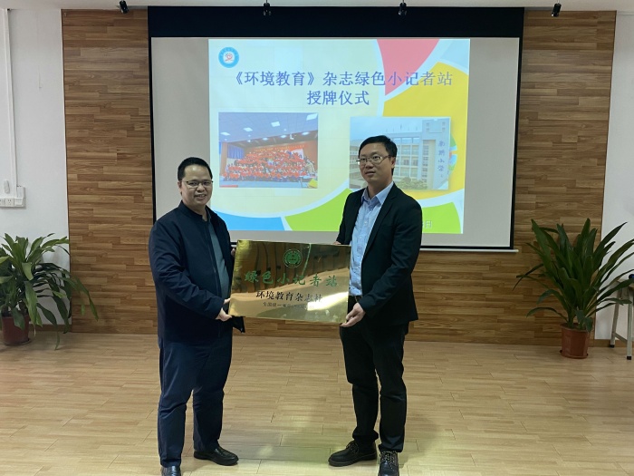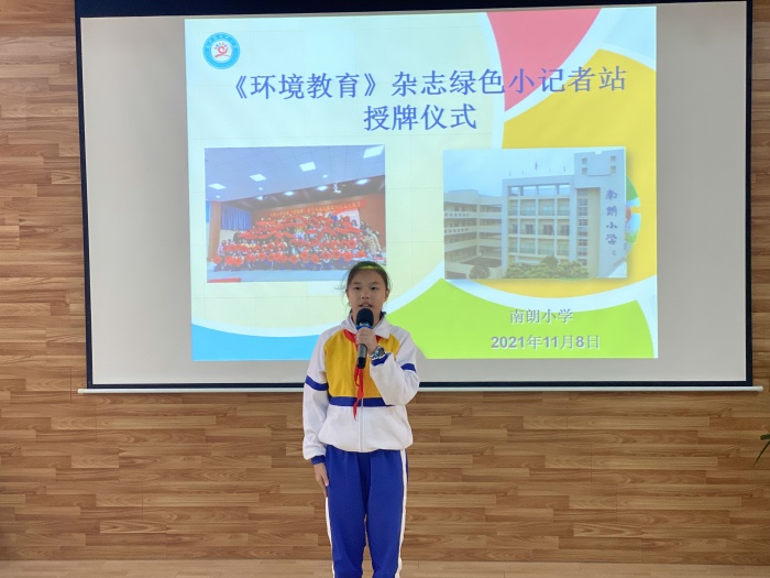 2021年11月8日,中山市開(kāi)啟了“速凍”模式,但是南朗小學(xué)的多媒體室卻充滿熱情和激動(dòng),在這里我們舉行了生態(tài)環(huán)境部主管《環(huán)境教育》雜志社綠色小記者站南朗小學(xué)分站授牌儀式。《環(huán)境教育》雜志社代表廣東省通聯(lián)站主任、嘉應(yīng)學(xué)院客座教授方觀生,廣東省通聯(lián)站實(shí)習(xí)記者歐陽(yáng)靜,學(xué)校黨支部書記、校長(zhǎng)陳敏華,綠色小記者站站長(zhǎng)林舒敏副主任以及23位準(zhǔn)小記者們、老師代表出席了授牌儀式。