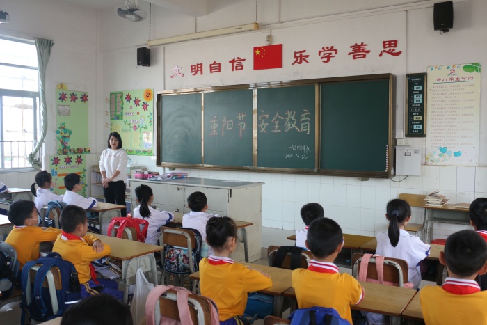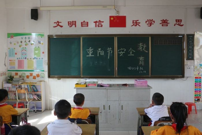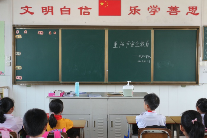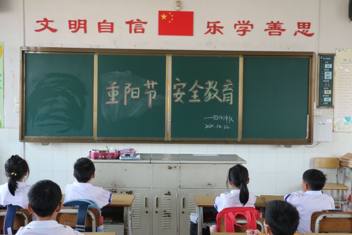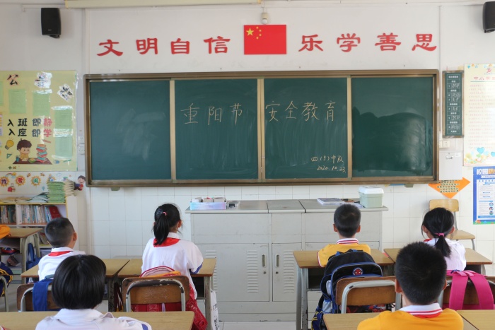 金秋十月,丹桂飄香,中國一年一度的傳統節日重陽節,就要來到了。尊老敬老是我們中華民族的優良傳統,弘揚這一傳統美德的同時,安全工作仍然是學校工作的重中之重,2020年10月23日課間操時間,南朗小學利用廣播進行重陽節安全教育,全體學生在班主任的組織下認真傾聽,各班提前在黑板上寫上主題詞“重陽節安全教育”。
