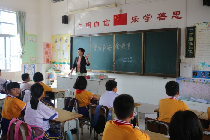 接著,各班主任組織學生學習重陽節的傳統知識以及強調安全教育方面的相關知識,倡導同學們要將安全放在首要位置,特別提醒同學們秋天氣候干燥,火災多發,在登高的時候注意防火安全,切忌隨意丟棄火種。同學們也紛紛談了自己的見解,對重陽節安全深入討論,強化了自身對于安全知識的認識。