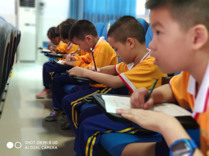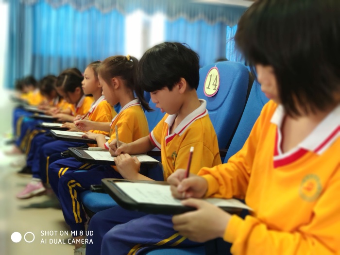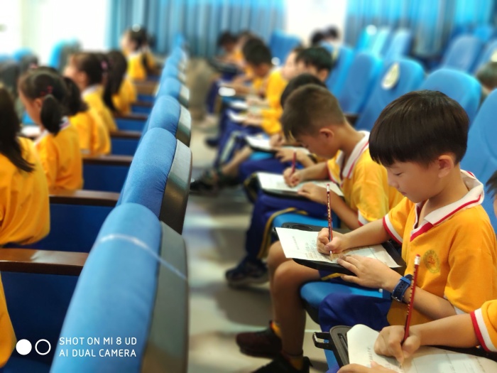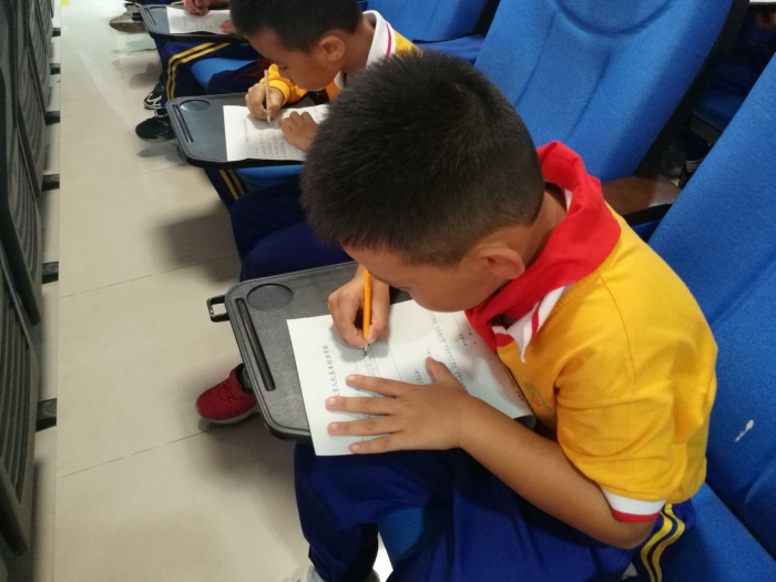 活動伊始,大隊部輔導員林舒敏老師通過短視頻,讓同學們初步了解少先隊的相關知識。接著,林老師針對“六知六會一做”展開,讓各預備隊員復習回顧少先隊隊名、創立者和領導者;知道隊旗、隊徽含義;知道少先隊的標志和作風。會戴紅領巾、敬隊禮、會呼號、會唱隊歌以及會背誦入隊誓詞。預備隊員們全神貫注,認真聆聽輔導員的講解,最后,林舒敏老師進行現場隊知識小考核,二年級的同學們一筆一劃認真書寫著,最后交上滿意的“答卷”。