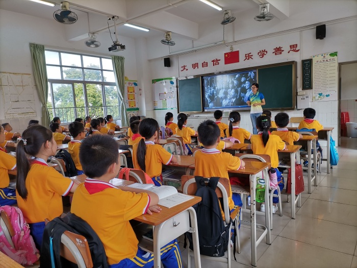 “我們是共產(chǎn)主義接班人,繼承革命先輩的光榮傳統(tǒng),愛祖國,愛人民,鮮艷的紅領巾飄揚在前胸……”當響起這首隊歌時,同學們個個精神飽滿,群情高昂,不由自主地跟著哼唱,一張張稚嫩的臉上流露出同學們對少先隊組織的向往和崇敬。9月28日上午,南朗小學利用班會課組織少先隊員們重溫了少先隊知識,使其加深對中國少年先鋒隊的了解,明確入隊的意義,培養(yǎng)他們對少先隊的情感。