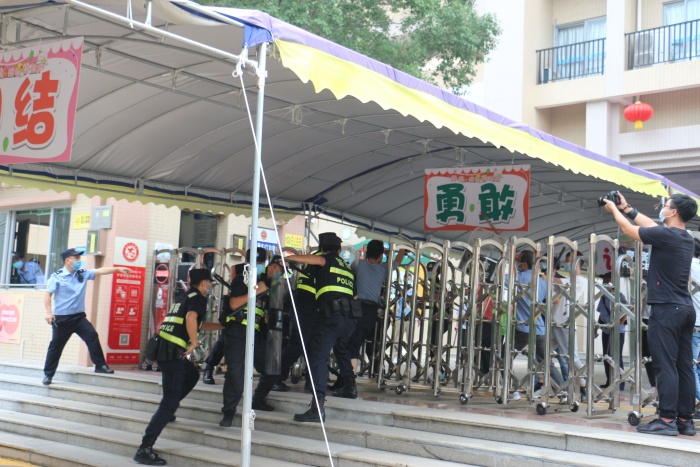 為了成功開展好這次的演練活動,南朗小學和南苑派出所反復協商,并進行了兩次彩排,南朗鎮宣傳文化中心也派出了攝制組到場進行錄制。8:15活動正式開始,歹徒扮演者表演逼真,學校值班保安和參與人員積極配合,防暴力量氣勢如虹。演練結束后,南苑派出所的張教導員為全校師生進行安全教育,詳細講解了學生當遇到突發傷害事件時候如何應對。最后南朗小學陳敏華校長對活動進行了總結,他贊揚了全體參與人員,隨后熱情邀請防暴小組組長為學校全體保安進行了技能講解和訓練,提高了保安人員處理突發事件的能力?;顒拥捻樌M行充分體現了學校對校園安保工作的高度重視以及活動全程各個環節都不厭其煩地反復進行思考和練習。