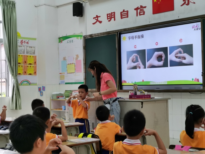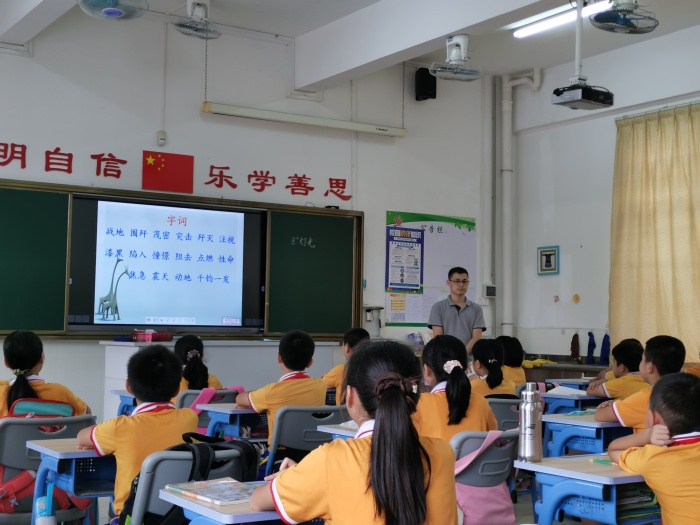 二年級共進組周凱琪老師上課內容是識字2《樹之歌》。周老師是根據兒童詩特點,創設情境,激發學生的學習興趣,帶領學生讀書、識字。一年級共進組黃南婷老師上課內容是《a o e》,黃老師運用多種教學手段讓學生在輕松愉快的課堂中掌握知識。如利用故事、根據課本上的插圖、以做手勢的形式、借助兒歌,識記字形。四年級共進組廖賢芬老師上的是《夜間飛行的秘密》第一課時,生字詞的學習、主要內容的概括等,第一課時目標任務十分具體。五年級共進組賴云怡老師上課內容是《摔跤》,先閱讀片段,四人小組合作學習,緊扣人物的動作,了解主人公鮮明的特點,最后進行小練筆,續寫第二次比賽的過程。六年級共進組盧凱耀老師上的是《燈光》,首先,抓題眼,初識英雄形象。其次,,四人小組合作學習,抓句子,提升英雄形象,感受到郝副營長關心下一代和不怕犧牲的品質。