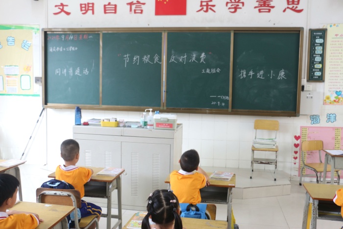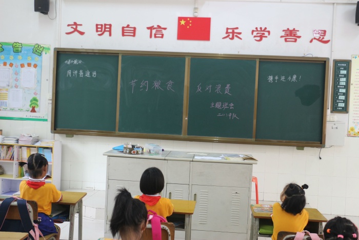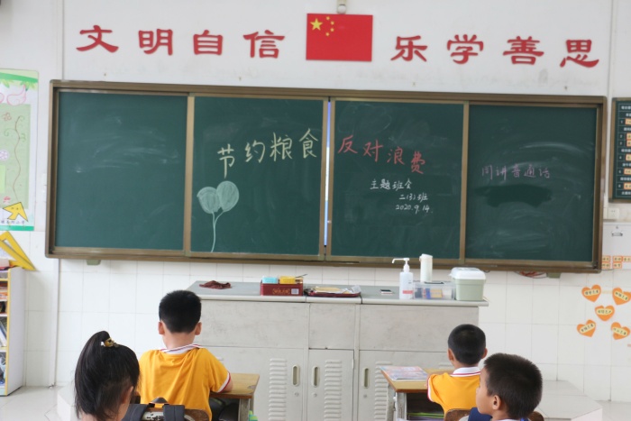 為了弘揚中華民族勤儉節約的傳統美德,引導學生樹立節約觀念。9月14日,南朗小學組織一、二、三年級開展了“節約糧食,反對浪費”主題班會。各班班主任紛紛在黑板上寫上“節約糧食,反對浪費”的主題詞。