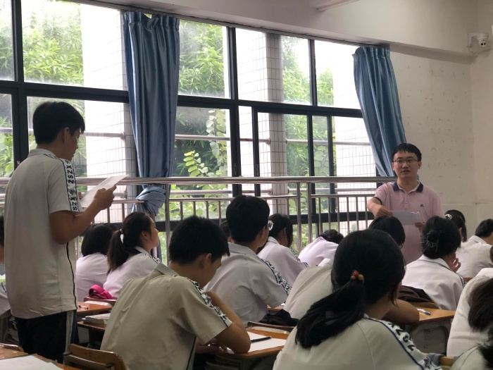 本次活動由課題課例展示、課題研究闡述、課題交流問答三部分組成。首先由卓山中學的牛付江老師在初一(5)上了一堂生動的《逐段點題,文顯脈絡》的課題課例。這節課是圍繞作文脈絡研究這個課題,設計教學目標。課堂上,牛老師激情澎湃,思路清晰明了,循循善誘,語言妙趣橫生,深受學生們的喜愛。隨后,牛角中學林智德老師在初二(5)班上了一堂《小人物,大品格——通過典型事例,凸顯人物形象》的群文閱讀課。在課堂上,林智德老師幽默機智地化解了與學生之間的陌生距離感,并未因課堂上的一些突發事件使得課堂沉悶,整個堂課氣氛和諧明朗。這節課中所提供的群文閱讀中的組文形式,切合學生的實際,激發學生的閱讀興趣,提高學習的積極性,小組之間的合作交流,活躍了課堂氣氛,很好地完成本節課的教學任務。群文閱讀教學給卓山中學學生帶來新的學習體驗,拓寬了學生的語文思維。