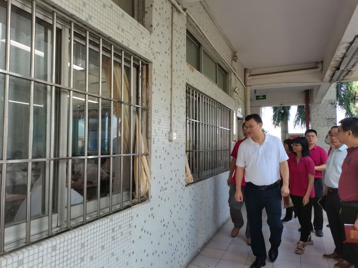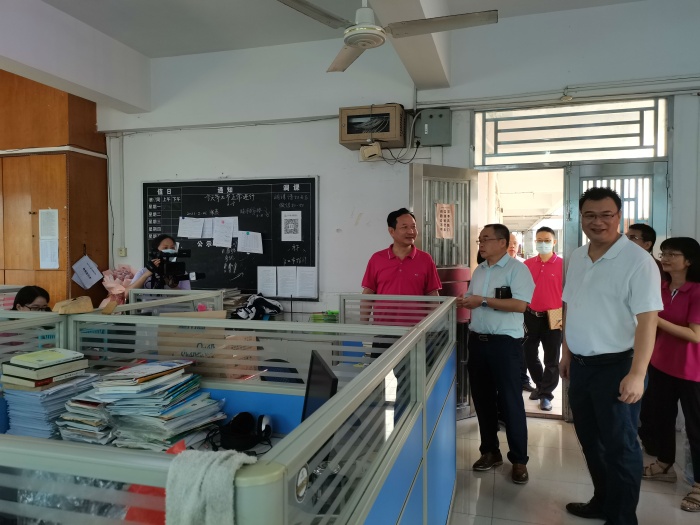 9月1日上午,阜沙鎮(zhèn)李健華鎮(zhèn)長(zhǎng)在阜沙鎮(zhèn)教體中心黃桂生局長(zhǎng)、徐瑞欽副主任陪同下,到牛角中學(xué)視察新學(xué)期開(kāi)學(xué)工作情況,了解師生教學(xué)、校園疫情防控、學(xué)校工程進(jìn)展等。學(xué)校何杰華校長(zhǎng)等相關(guān)行政人員陪同視察并作現(xiàn)場(chǎng)工作匯報(bào)。