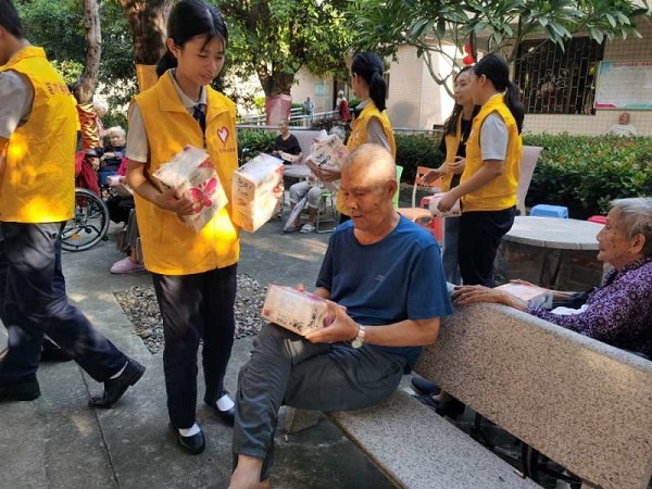 為進一步弘揚孝老愛親、尊老愛幼的傳統美德,引導學生們尊重老人,孝敬長輩,學會感恩,僑中英才學校以“重陽節”為契機,團委、少先隊組織師生志愿者服務隊帶著濃濃的真情,于10月26日下午來到環城頤老院,為老人們送上節日的祝福與問候。
