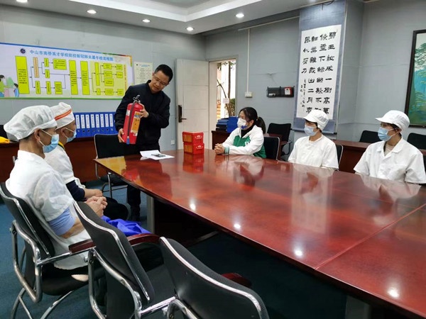 為了切實提高新教師處理突發火災事故的能力,演練結束后,校長助理黃強組織新教職工開展了崗前消防培訓,黃助理結合“消防安全四個能力”對老師們進行理論知識培訓,要求參與培訓的新教職員工務必要將消防安全知識記于心、踐于行,并鼓勵大家積極練習正確使用滅火器,會正確佩戴防煙面具。