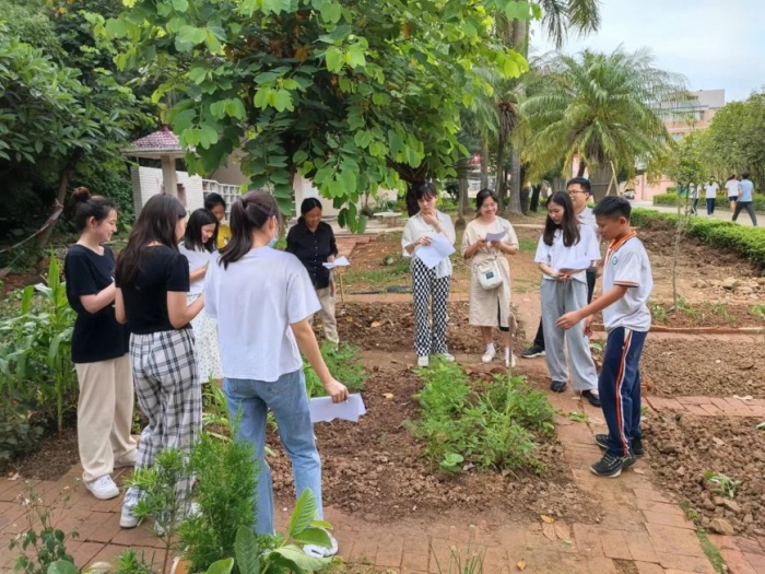 各個班級的勞動基地種植的蔬菜種類繁多,有番薯葉、生菜、辣椒、空心菜、茄子、番茄等幾種蔬菜,還有龍葵、長壽花等植物。平時,老師帶著孩子們親身參與到種植活動中,從收集種子,耕地、播種到澆水,讓同學們通過自己的勞動感知植物的生長,體驗收獲的快樂。
