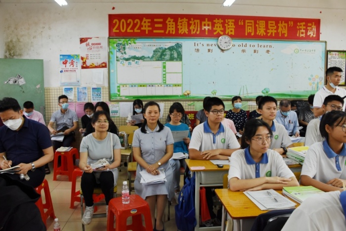 為探索初中英語有效復習教學模式,增進區域內學校教學教研交流,提高三角鎮初中英語教學質量,4月29日下午,2022年三角鎮初中英語“同課異構”活動在三角中學舉行。中山市教育教學研究室張泰剛老師、三角鎮教育和體育事務中心吳萍老師、三角鎮初中英語中心教研組全體成員、三角中學、沙欄初級中學和迪茵公學英語科組老師參加研討活動。