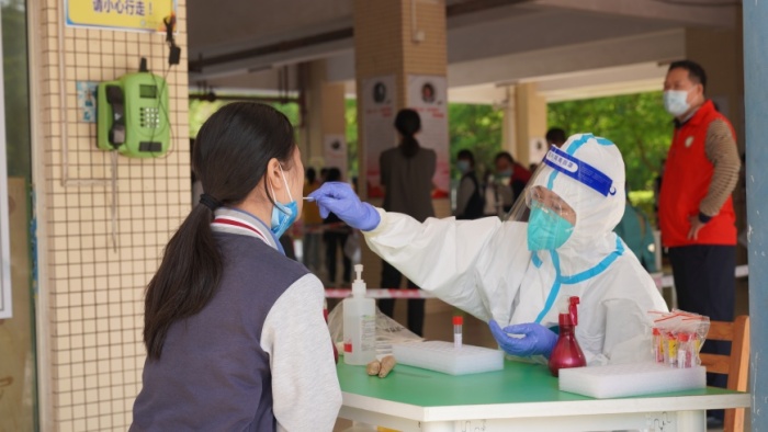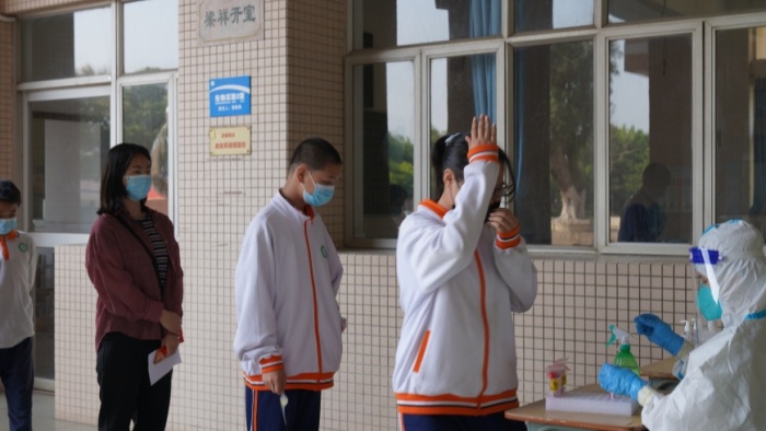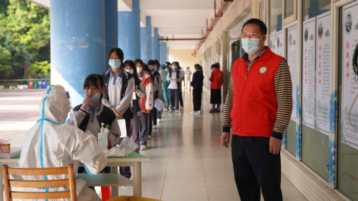 為積極響應中山市新冠肺炎疫情防控指揮部的要求,保障全校師生的健康安全,4月6日上午,三角中學準備就緒,協助醫護人員共同做好全體學生及教職工的核酸檢測工作。