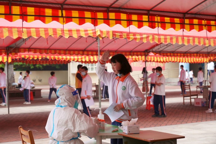 根據上級疫情防控工作精神,為保障廣大師生生命安全和身體健康,筑牢疫情防控校園防線,確保學校教育教學工作與疫情防控工作有序推進。3月31日上午,三角中學開展全體師生教職工核酸檢測工作。為確保核酸采集工作順利進行,學校領導高度重視此次核酸檢測工作,學校疫情防控工作領導小組統籌部署,提前制定檢測方案,從人員安排、場地布置、路線規劃、班級調度、信息收集等方面進行周密部署,確保各環節工作順暢。