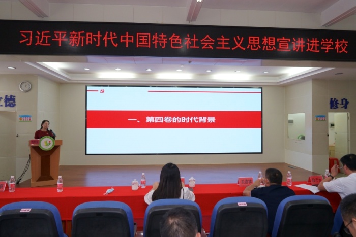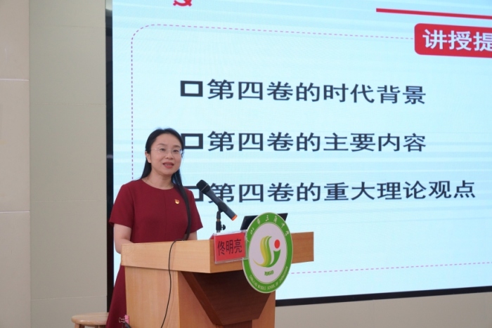 宣講會由中山市委宣講團成員,廣東開放大學(廣東理工職業學院)教授佟明亮同志進行宣講報告,佟教授從第四卷的時代背景、主要內容、重大理論觀點等三方面進行講授。宣講會上,黨員教師們聚精會神地聽取報告,認真記錄,書寫心得。