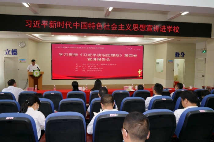 為引導廣大黨員教師認真學習《習近平談治國理政》第四卷,切實把學習成果轉化為奮進新征程、建功新時代的工作舉措和實際成效,以實際行動迎接黨的二十大勝利召開,9月26日下午,三角鎮三角中學黨支部書記溫結聯帶領全體黨員教師參加了教育系統《習近平談治國理政》第四卷宣講會。