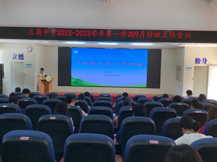 班主任是班集體建設的組織者和引領者,是學校德育工作的主力軍。為不斷提高班主任的工作水平,繼續推動和促進班主任隊伍建設,切實提高班級管理的實效性和科學性,9月15日上午,三角中學召開9月份班主任例會。本次會議由德育處主任何志楊主持,全體班主任教師參加會議。
