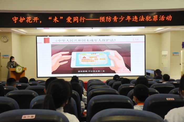 本次講座以“法護未來課堂”為主題,由廣東厚弘律師事務所的陳笑梅律師主講,旨在以案釋法、以法論事,達到提醒、警示青少年的作用。講座通過PPT+現場互動,結合真實的案例,深刻地剖析包括未成年刑法、性教育和校園欺凌刑罰策等內容。講座伊始,陳律師從“什么是違法與犯罪?”“如何預防未成年人犯罪?”“如何保護好自己?”以及“校園欺凌的主要表現及特點”等幾個方面切入主題。他列舉并詳實分析了發生在校園中的一些典型案例,用青少年易于理解的講述方式,深入淺出地講解了《未成年人保護法》《預防未成年人犯罪法》等相關法律知識,強調了校園欺凌、毒品犯罪等行為的危害性,幫助學生辨別不良行為和違法犯罪。