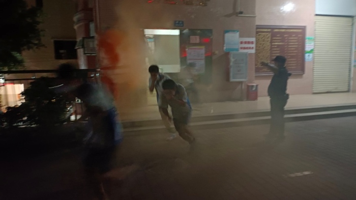 本次應急安全演練疏散點設定為宿舍樓。應急演練開始。隨著學校各個設置點濃煙升起,一陣急促的警報聲響徹校園每個角落。學校各級領導、老師們以及樓梯口疏導人員迅速到位,嚴陣以待。宿舍內學生迅速做出反應,并在各疏散口的老師的指揮下,彎著腰,一手用濕紙巾捂住口鼻,一手護頭,沿著既定疏散逃生路線迅速有序地撤離到學校初三樓前廣場安全地域集中。