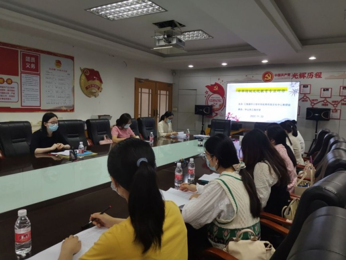 本次專業研修活動以“研讀中華傳統文化教育的國家文件”為主題,由三角鎮中小學中華傳統文化中心教研組組長陳秀君老師主講。陳老師主要解讀了有關中華優秀傳統文化教育的國家文件《關于實施中華優秀傳統文化傳承發展工程的意見》《完善中華優秀傳統文化教育指導綱要》《中華優秀傳統文化進中小學課程教材指南》。