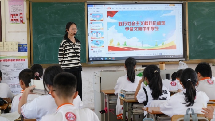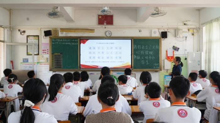 班會課上,班主任們從理論實際出發,從什么是社會主義核心價值觀和如何踐行社會主義核心價值觀兩個方面對社會主義核心價值觀基本內容進行圖文并茂地生動講解,并深刻闡釋社會主義核心價值觀的內涵與意義,幫助學生熟記于心,踐之于行。