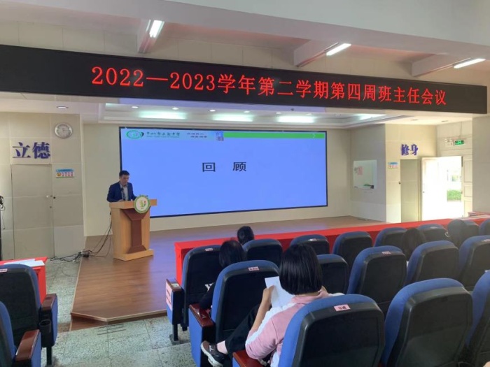 會議伊始,德育處主任何志楊跟大家回顧了班主任工作中的亮點,肯定了班主任工作的辛勤付出。同時指出班主任的地位和任務是非常重要的,更要提高自己的素養,做好學生的引路人,并針對班級管理中需要提升的地方給大家做了梳理,從班級管理、宿舍管理、衛生情況、安全教育、心理健康、家校共育等多個方面強調了班主任工作細心、高效的重要性。最后,何主任耐心引導,希望大家都要努力去做一根會思考的蘆葦,做一名善于思考的老師,徜徉于德育的快樂中。