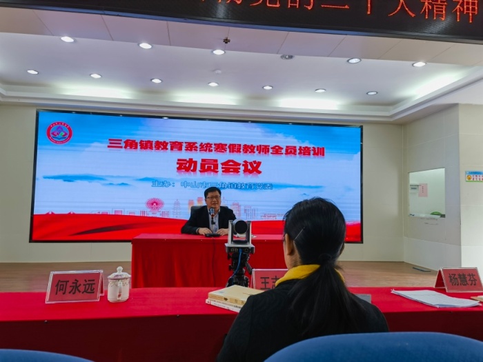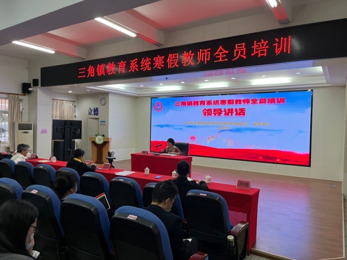為進一步貫徹黨的教育方針,更好地提升全鎮中小學教師的專業發展水平及師德修養,使之適應新形勢的發展,提升教師職業道德素養,強化育人使命感和責任感,全面推進素質教育,提高教育教學質量。2023年2月3日下午,三角鎮在三角中學報告廳(主會場)召開三角鎮教育系統寒假教師全員培訓動員會議。三角鎮黨委副書記何永遠、鎮教體局領導、鎮教體中心全體人員、三角中學教師在主會場參加本次培訓動員大會,其他學校教師在本校分會場,通過視頻直播方式參加會議。會議由楊慧芬局長主持。