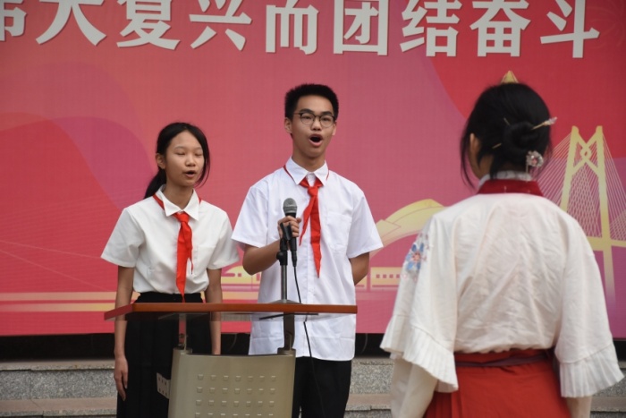 自古英雄出少年,少年是民族的脊梁,是民族的未來。活動伊始,在初二4班兩名領誦員的帶領下,全體同學朗誦了近代思想家梁啟超揮筆而就的名篇《少年中國說》。他們的朗誦鏗鏘有力、正氣凜然;他們的聲音,熱情激昂、意氣風發(fā)。贏得在場同學們雷鳴般的掌聲,全場氣氛熱烈。