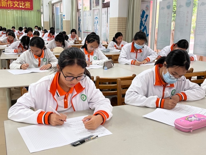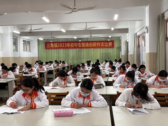 諾貝爾文學獎獲得者海塞說:“沒有什么比沉浸在創作的歡樂與激情中揮筆疾書更美,更令人心醉的事了?!睂懽鞯倪^程,是學生認真觀察、主動思考、用心感悟的語文綜合能力的集中體現。為培養初中生創新作文能力,提高現場快速作文水平,增強創新思維和創新意識,提高他們的語文素養和文化修養,4月11日下午,三角中學組織初一、初二年級部分學生參加三角鎮2023年初中生現場創新作文比賽。