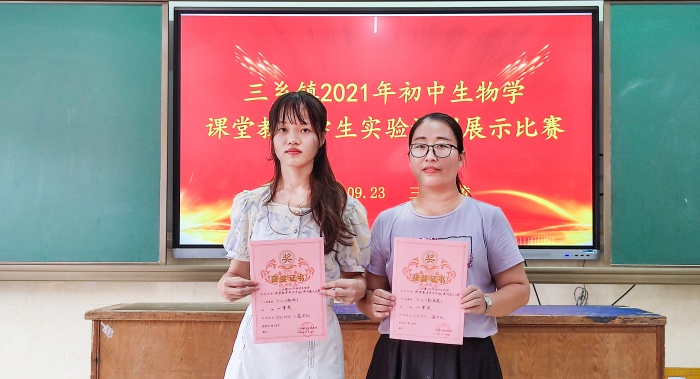 經過激烈的角逐,評委們對參賽教師們進行綜合評比打分,評出了一、二等獎。比賽結束后,三鄉鎮理化生中心教研組組長陳春華老師為各位獲獎選手頒發榮譽證書。獲獎情況如下:
