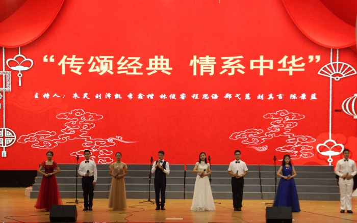 遨游浩渺的詩海,在文字的錦繡里穿行,在聲韻的河川里徜徉。同學們賦以朗誦全新的表演形式,用飽滿的誦讀情感,鮮亮整齊的服飾,富有感染力的舞臺設計,將拳拳愛國心,深深赤子情與當代學生的青春和激情表現得淋漓盡致,深深感染了現場的所有評委和觀眾,贏得了大家熱烈的掌聲。
