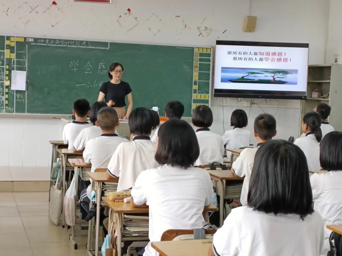 感恩教育是中學德育教育的重要內容,目的是讓學生能自覺培養和樹立正義、文明、健康、向上的感恩意識,常懷感恩之情、樹立感恩之德、履行感恩之責;做到在細微之處規范自己,對祖國報忠心,對社會獻愛心,對集體要關心,對父母盡孝心,對自我樹信心。沙欄中學每學期都在班級中召開各類感恩教育,讓每一位沙中學子都心懷感恩之心,快樂幸福地成長。