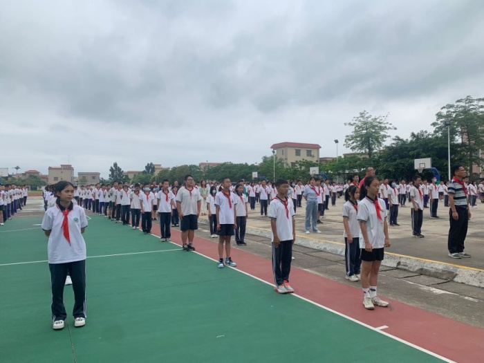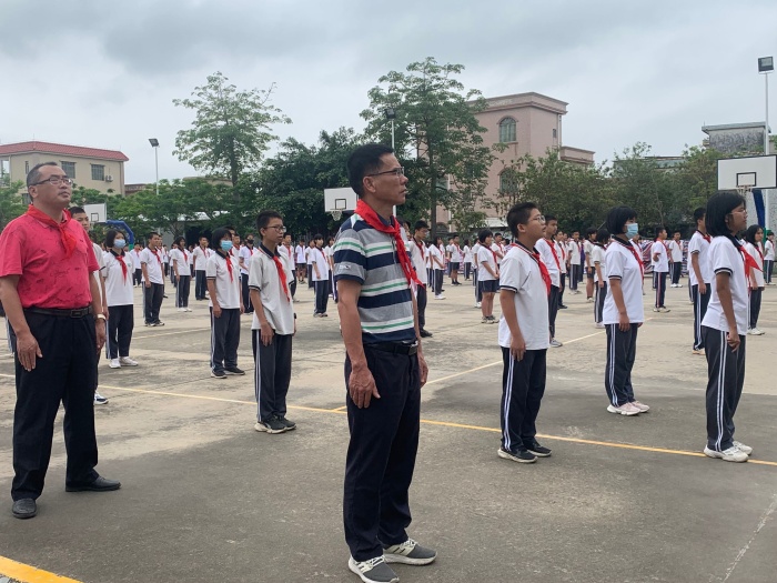 沙欄中學黨總支書記、校長、少工委主任梁炳華帶領全體少先隊員進行呼號:“準備著,為共產主義事業而奮斗!”“時刻準備著!”呼號結束,少先隊員們目送隊旗離場,隊旗的緩緩離場,標志著隊員們徹底告別童年時代,隊員們要滿懷希望,帶著勇氣和力量前行。