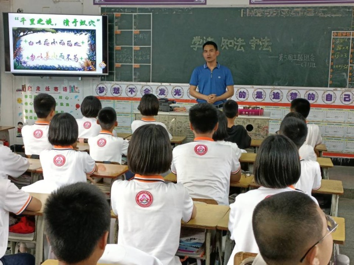 下午的班會課上,各班以“學法 知法 守法”為題開展主題班會。班委精心準備,從“你知道的法律有哪些”問題入手,引導大家提出自己的看法。繼而指出作為公民,一切行為應遵從憲法、法律所禁止的堅決不做。要認清哪些行為是不良行為,自覺遠離不良行為。通過案例“張某從游戲機室入高墻”分析:張某哪些行為屬于違反校紀的行為?張某哪些行為屬于違法犯罪行為?張某由好變壞,最后走上犯罪道路的過程說明了什么?青少年應從中吸取什么教訓?四個問題層層深入,指出不良行為走向犯罪的過程。