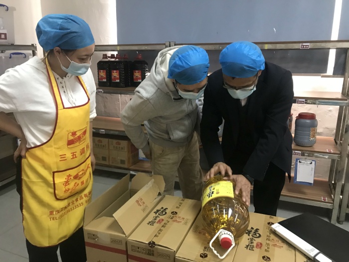 實地了解廚房、倉儲和制作環節情況后,上午10點45分,檢查組楊慶新主任就監督檢查情況同餐飲公司負責人進行了深入的交流,督促該公司嚴格落實檢驗、檢測的管理責任,明確要求用餐配送公司制定檢驗、檢測計劃,定期對大宗食品原料、加工制作環境等自行或委托具有資質的第三方機構進行檢驗、檢測。同時,對發現的其它問題及時提出了改進意見和建議,并要求該公司根據疫情防控形勢做好配餐服務人員調整,加強對配餐服務人員的監管,嚴格查驗相關工作人員的健康情況。