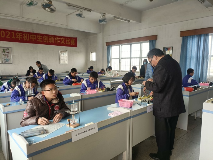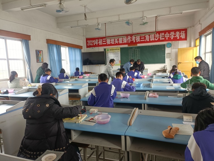 當(dāng)天實(shí)驗(yàn)考核,三角鎮(zhèn)兼職物理教研員史漢軍到場指導(dǎo)考核工作的開展。對于本次實(shí)驗(yàn)操作考核,沙欄中學(xué)的領(lǐng)導(dǎo)也高度重視,為確保考核工作順利進(jìn)行,在教導(dǎo)處的指引下,物理科組長龍老師帶領(lǐng)初三物理老師和實(shí)驗(yàn)員提前部署各項(xiàng)工作,安排專課專講專練,確保每位學(xué)生都有足夠的訓(xùn)練時(shí)間。物理科組的全體老師發(fā)揚(yáng)了“和舟共濟(jì)”的團(tuán)隊(duì)協(xié)作精神,全程參加實(shí)驗(yàn)考核的監(jiān)考評(píng)分工作。