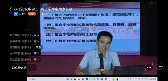 光陰似箭,日月如梭,轉眼間學期已過半。為了加強學校、教師與家長之間的聯系,增進每一位家長對學校工作及孩子在校學習情況的了解,更好地達到家校攜手、共育孩子美好未來的目標,沙欄中學于2022年11月18日晚分級分班召開了線上家長會。