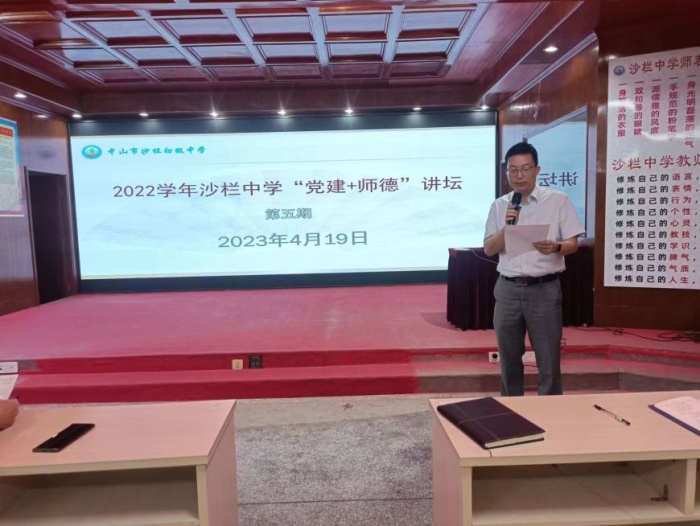 堅守教育初心,爭當新時代“四有”好教師。沙欄中學一直保持著爭當優(yōu)秀的傳統(tǒng),也一直保留著修煉師德的平臺。為進一步弘揚師德師風正能量,提高廣大教職工職業(yè)道德修養(yǎng),強化他們的育人使命和責任感,提升教職工師德師風整體水平,4月19日下午,沙欄中學4月份的“師德講壇”如期開講。