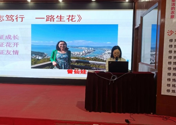 本期師德講壇的主角是英語科組的曾仙娃老師。她從自己成長經(jīng)歷講起,用生動的教育案例、感人的育人故事為全體教師分享了自己的教育經(jīng)歷。從賽課中見證成長,她收獲知識的同時也鍛煉了思維;在陪伴中見證花開,她收獲班級管理經(jīng)驗的同時也錘煉了能力;在團隊中見證友情,她收獲同事友誼的同時也學會了務(wù)實。她的教育故事不長,但每一幀都十分精彩。全體教師在認真聆聽的同時也在思考,教育之路既漫長又荊棘滿布,我們能做的就是堅守初心,一路前行,矢志篤行,一路生花。