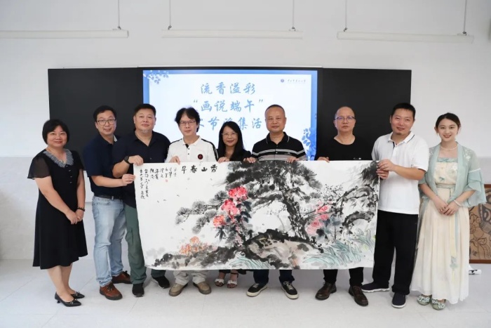 揭幕儀式后,與會專家移步展廳參觀畫作。作品中,有激情澎湃的賽龍舟現場,有溫情脈脈的包粽情景,更有喝雄黃酒、跳鐘馗、掛菖蒲等端午節傳統活動景象。手工香囊精美可愛,黏貼畫創意盎然,水墨畫飄逸靈動……形式多樣,風格多元,凸顯了香山學子的童真童趣與創新能力。