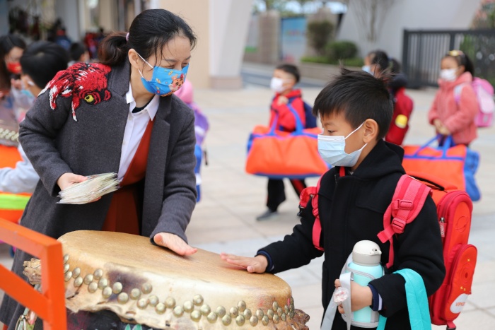 帶著小老虎口罩孩子們穿過氣球拱門,在云帆廣場“擊鼓明志”,一鼓作氣、二鼓勵志、三鼓向前進。陣陣鏗鏘的鼓聲鼓舞著師生們的士氣,為新學期開啟新的征程。