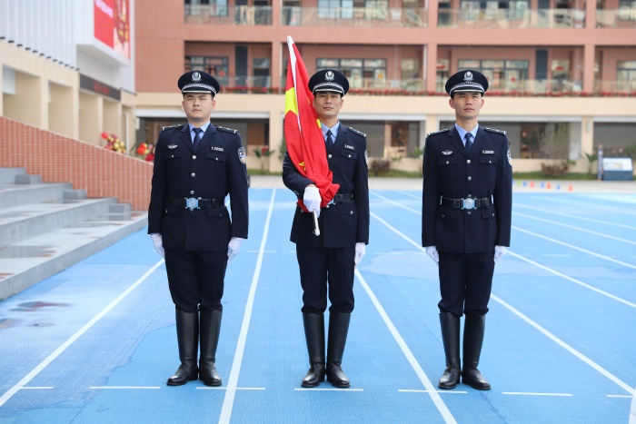 升旗儀式上,特警官兵身姿挺拔、步伐矯健,用昂揚威武的姿態振奮了全體師生的精氣神。全體師生以肅立的姿態、燦爛的笑臉迎接新學期的第一縷陽光。