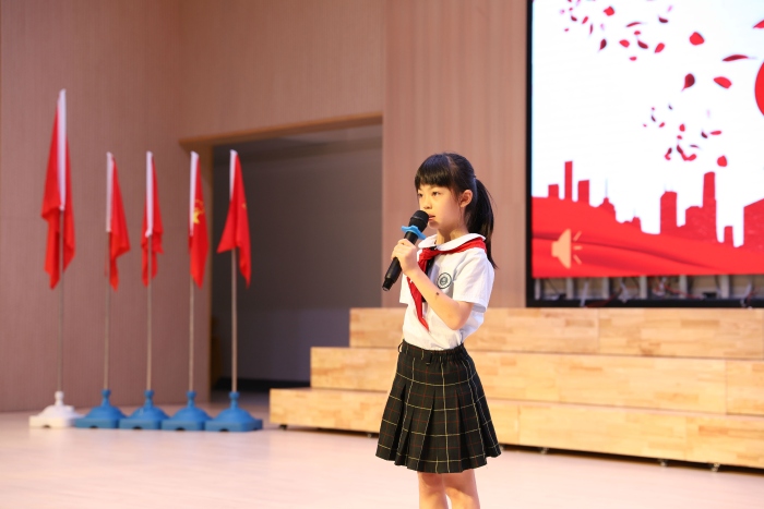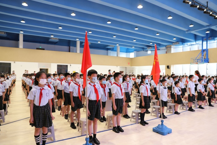 在莊嚴(yán)的出旗曲中,入隊儀式拉開了帷幕。旗手們踏著整齊的步伐,精神抖擻地護(hù)送隊旗向前邁進(jìn)。在鮮艷的隊旗下,同學(xué)們高聲齊唱《中國少年先鋒隊隊歌》,嘹亮的歌聲中充盈著對中國共產(chǎn)黨、中國少年先鋒隊堅定的擁護(hù)。