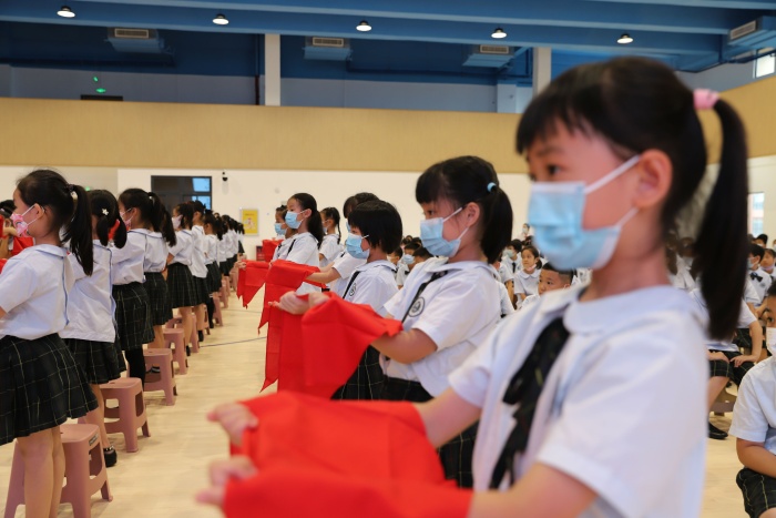 上午,全校師生集中體育館,參加香山小學(xué)“喜迎二十大,永遠(yuǎn)跟黨走,爭做好隊員”新生入隊儀式,共同見證一年級首批入隊隊員高光時刻。