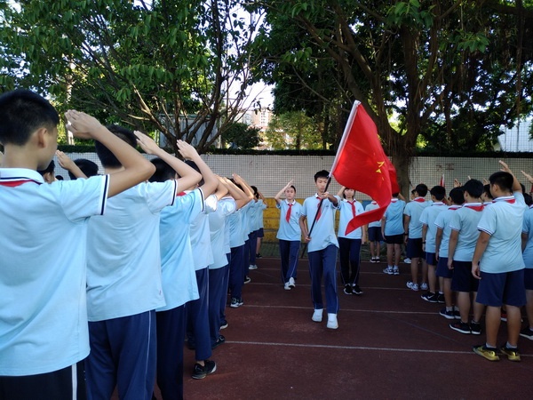 全體肅立!八年級大隊旗手、中隊旗手把隊旗舉起展開,敬隊禮!最后一次以少先隊員的身份跟著陳燕書記呼號:“準備著,為共產主義事業而奮斗!”“時刻準備著!”